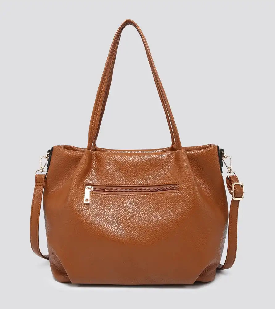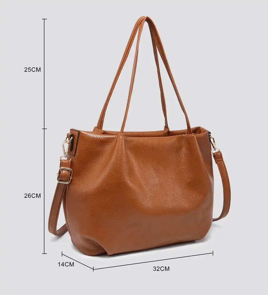 The Lizzie is perfectly designed for style and practicality. Crafted from a soft faux Leather, it is fashioned with long handles that fit comfortably over the shoulder, as well as a long removeable and adjustable strap. It is fastened securely with a top zip closure and features internal and external zipped pockets, a fully lined interior and Gold tone metal hardware.