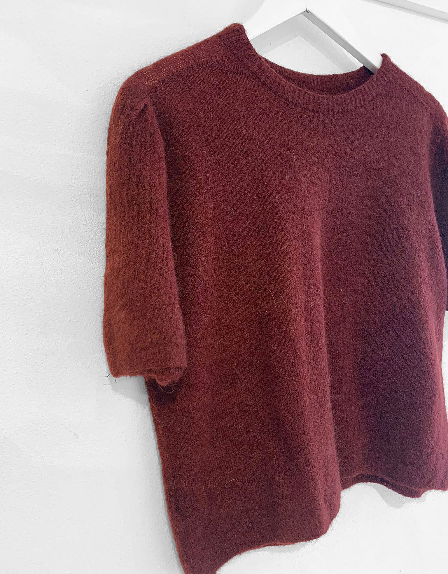 Add a touch of timeless elegance to your wardrobe with the superfine and luxurious Alpaca and Angora blend Elin jumper. This beautifully crafted piece showcases an intricate crochet detailing on the sleeves for a delicate finish. It is styled in a relaxed boxy fit with a round crew neck, short sleeves and a subtle puff shoulder. It is complemented with a fine rib detailing at the neck, arms and hem. Fabulous in its simplicity it is perfect for layering and a must-have for effortless, everyday sophistication.