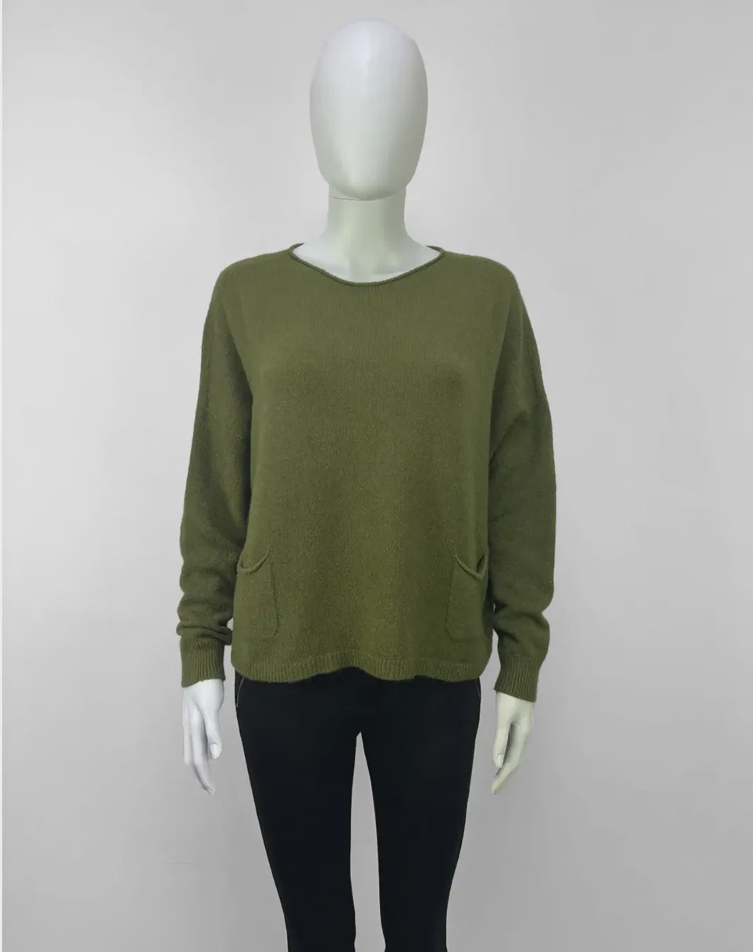 The super soft knitted Elsa jumper is a simply designed, stylish top that is so easy to wear. This long sleeved jumper has a round crew neck and a deep contrasting band of fine ribbed detailing along the hem and cuffs. It is cut in a relaxed boxy fit and features two front patch pockets. It is the perfect piece to wear with our Athena Leopard print skirt or some wide leg trousers, just add trainers for a stylish, relaxed look.