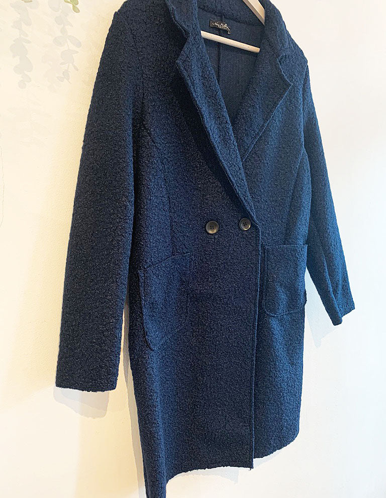 Opt to keep warm in style this season with the elegantly textured Elspeth coat. This double breasted coat with notched lapels is crafted from a soft Boucle fabric and cut to a knee length. It is fashioned in a relaxed silhouette that looks great layered over a chunky knit, and features two front patch pockets. A smart layer, essential to every woman's capsule wardrobe.