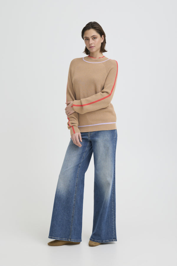 Combining a classic neutral tone with a colourful stripe detailing, the Boston is just what your wardrobe needs for the new season. This stylish relaxed fit jumper is crafted from a soft ribbed knit and has long sleeves and a turtle neck. Add a pair of trousers or jeans for a great look!