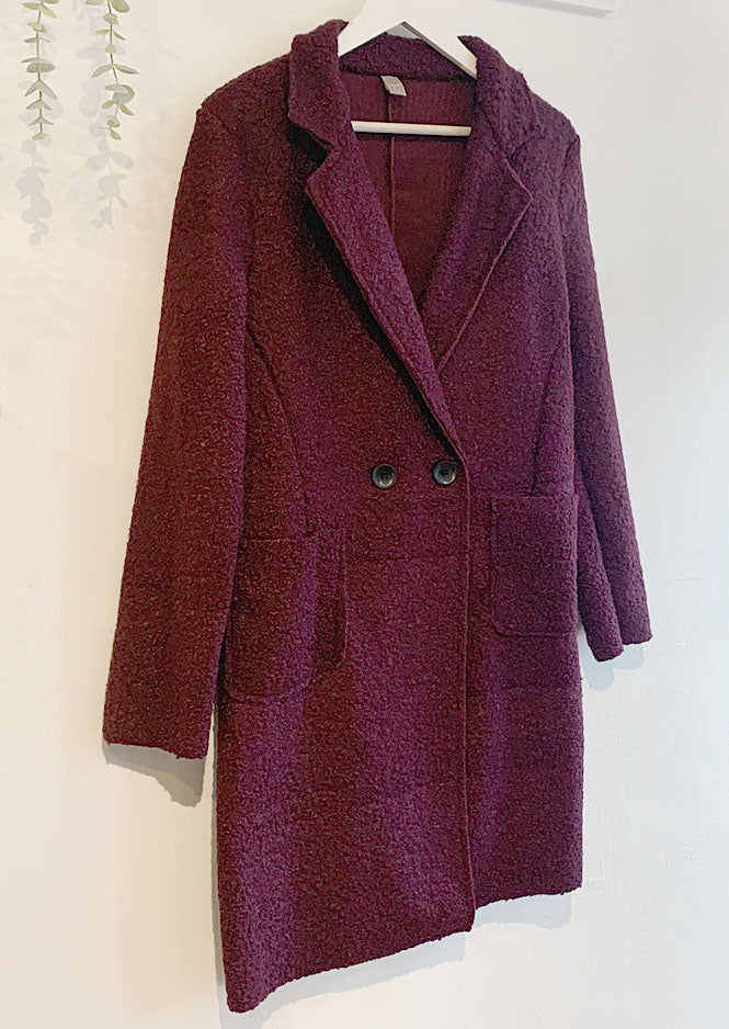 Opt to keep warm in style this season with the elegantly textured Elspeth coat. This double breasted coat with notched lapels is crafted from a soft Boucle fabric and cut to a knee length. It is fashioned in a relaxed silhouette that looks great layered over a chunky knit, and features two front patch pockets. A smart layer, essential to every woman's capsule wardrobe.