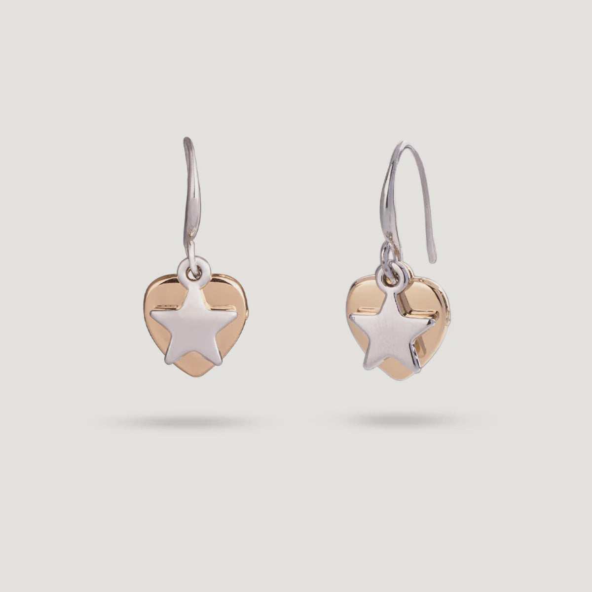 Emily Heart & Star Drop Earrings - Silver & Gold