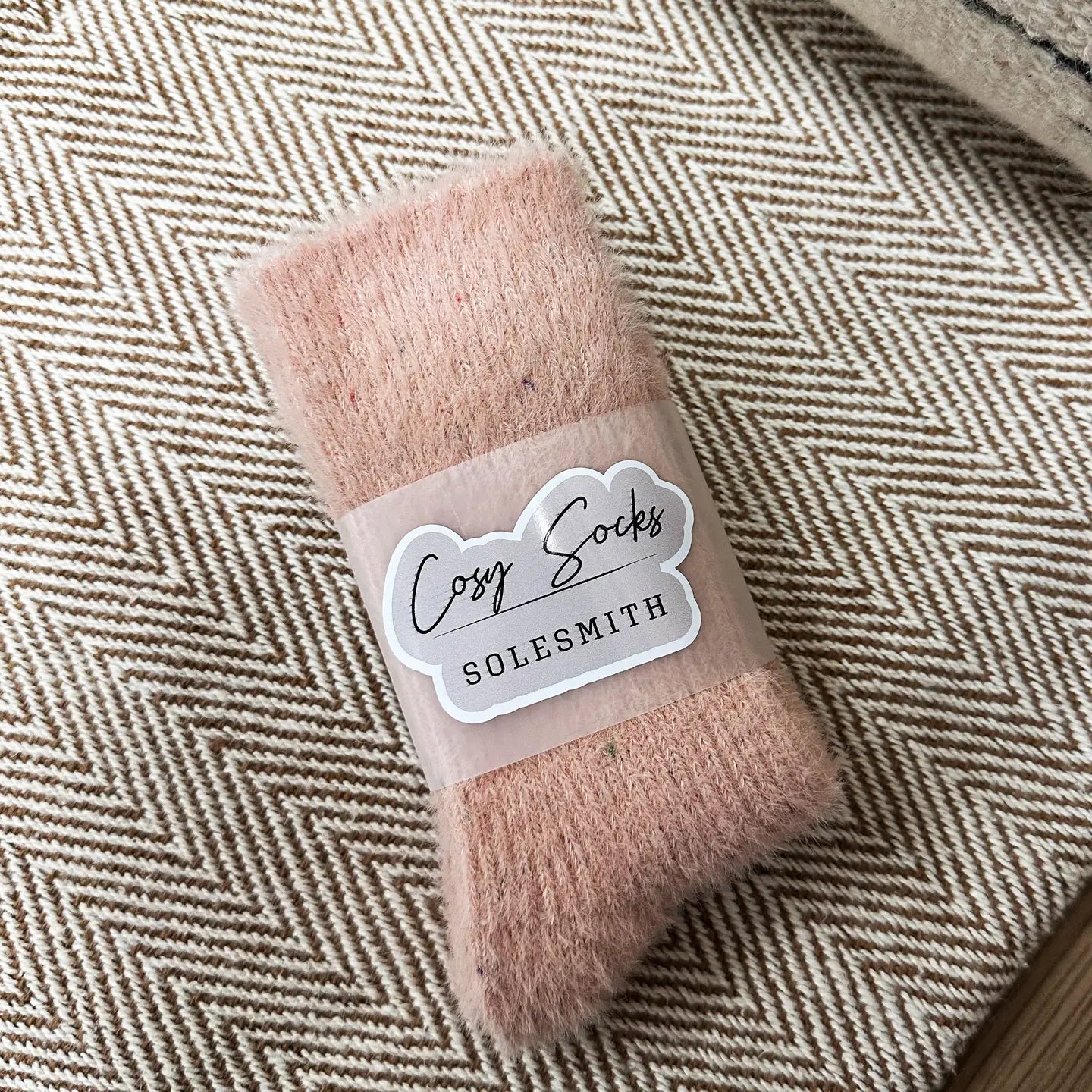 These soft and fluffy knitted bed socks are crafted with a fleck of coloured thread running through them, bringing style to an over looked accessory. They are fashioned in a fine rib from a soft Cotton blend and feature a branded Solesmith tag. Beautifully presented in branded packaging, these super cute glittery socks make the perfect gift.