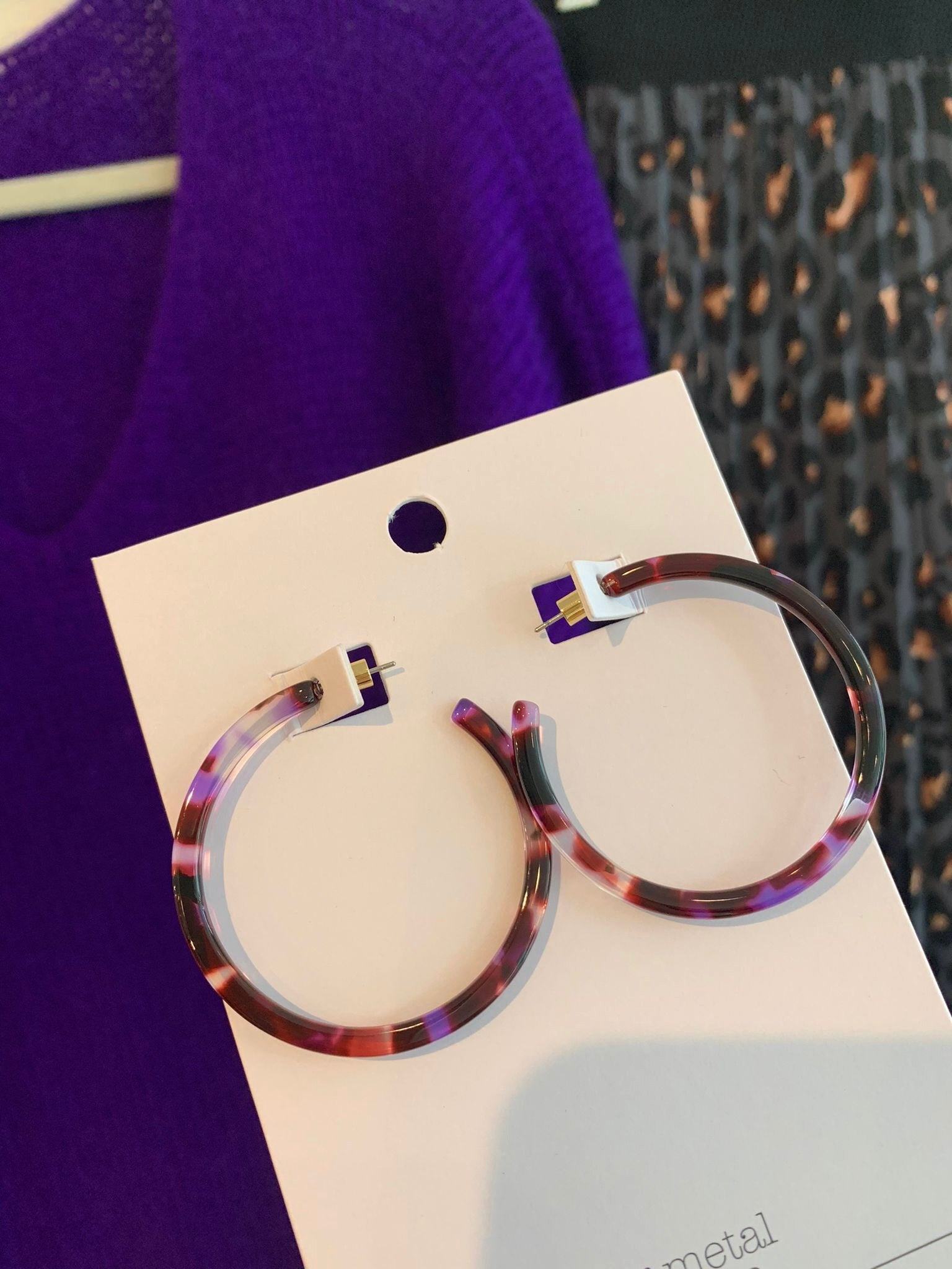 The oversized Livia Resin hoop earrings in a vibrant Blue and Black are a bold celebration of colour and form. Crafted from sustainable, recycled Resin sourced from surplus eyewear materials, each pair showcases a unique pattern and polished finish that adds modern edge to your everyday styling. Lightweight yet impactful, they’re the perfect accessory to elevate casual looks or sharpen up statement outfits. Hypoallergenic surgical steel posts ensure comfort and wearability for sensitive ears.
