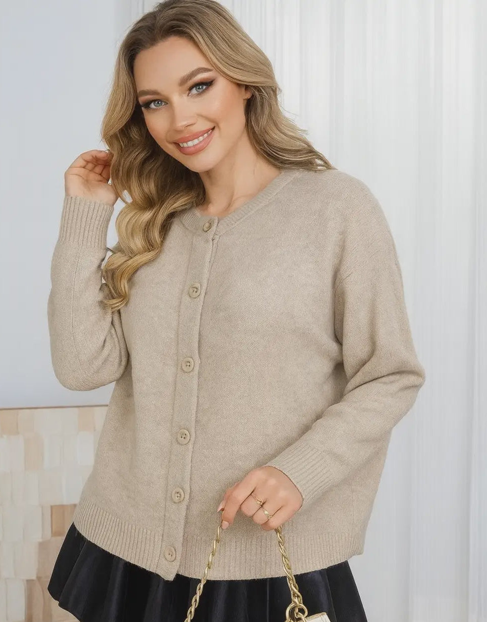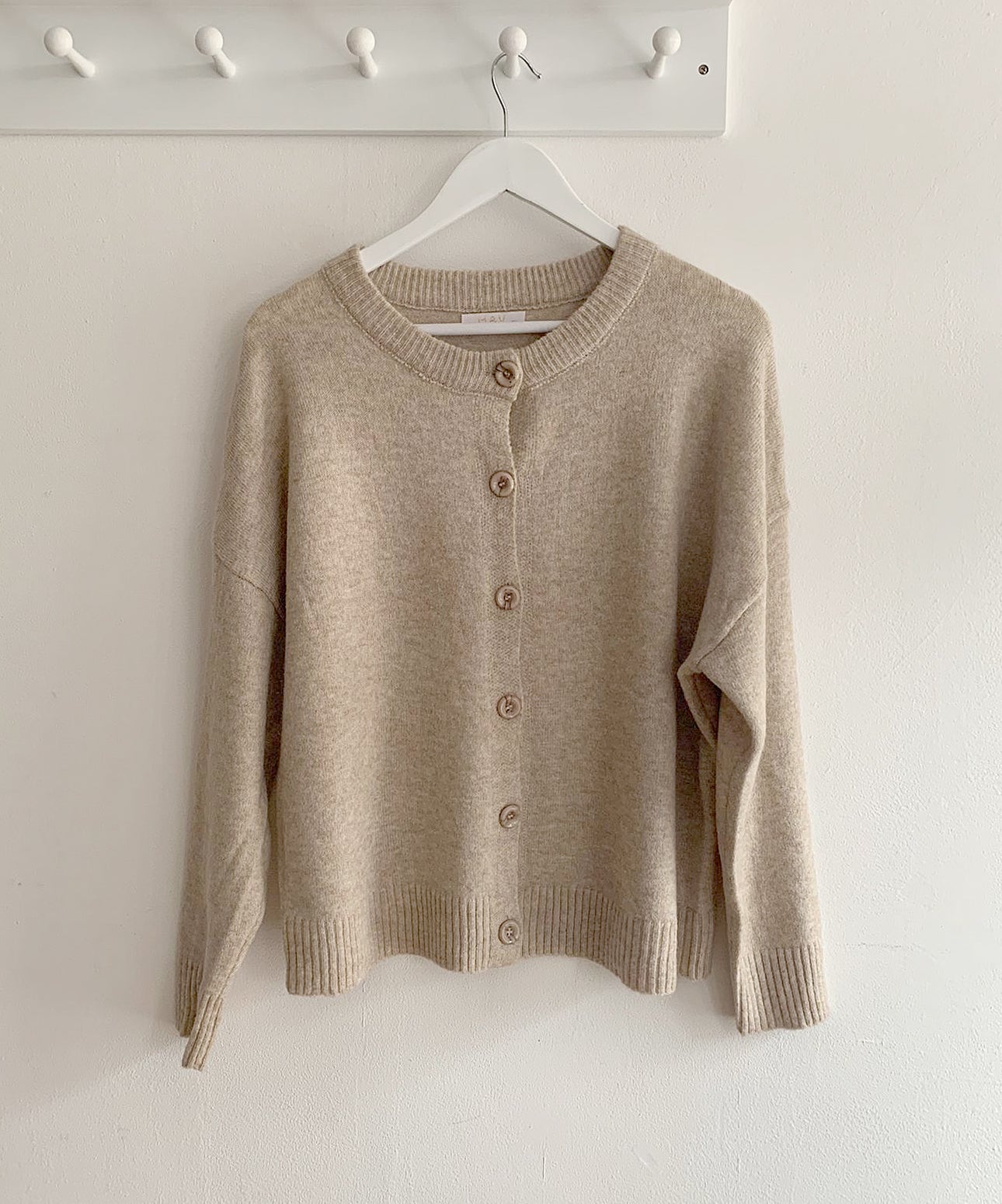 A timeless wardrobe staple, the knitted Andrea cardigan is the perfect layering piece for effortless style and everyday comfort. Crafted from a soft Wool blend, it is fashioned in a relaxed boxy fit with a round neckline and long sleeves, and features a rib detail at the cuffs, neckline and hem. With its classic button-up design, it is easy to wear open or closed for versatile styling and and works seamlessly from casual looks to more polished outfits.