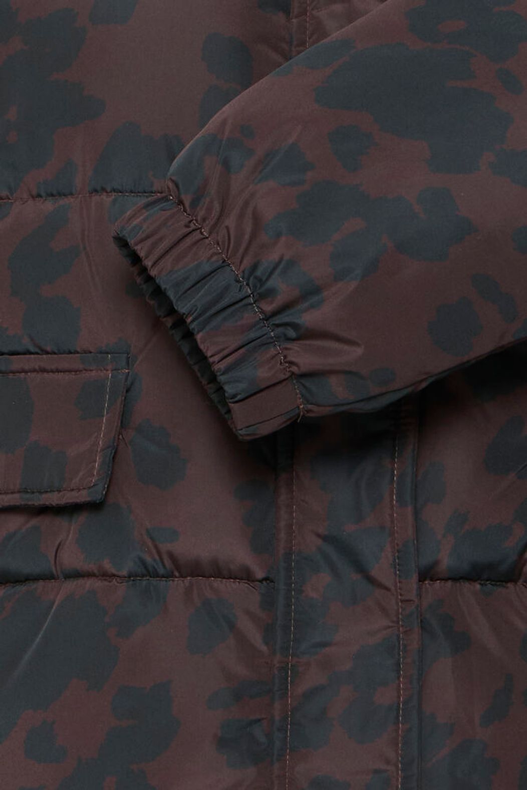 With it's on-trend subtle Chocolate Brown animal print, the ICHI Frigg puffer style jacket is designed to keep you warm in style. This lightweight yet insulating jacket is quilted for extra warmth and is cut to a hip length in a boxy fit that's perfect for layering. Enjoy snuggling with the high neck collar and long sleeves finished with elasticated cuffs.