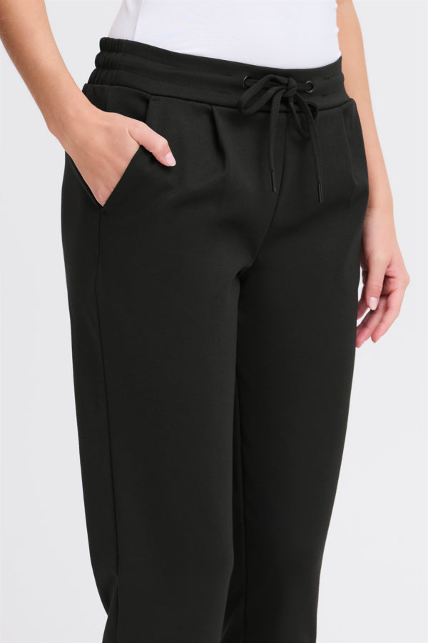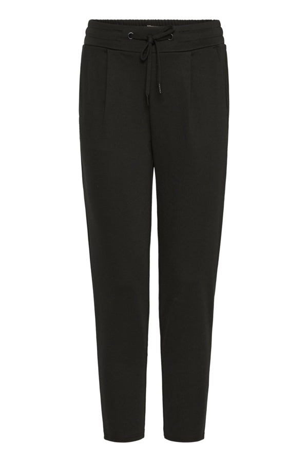 Loungewear is the cosy seasonal must-have and the Kate jogger style trousers don't disappoint. Snuggle on down in these ICHI cropped trousers that will make you feel relaxed and comfy. Made from a soft Jersey fabric with an elasticated waistband and tie belt, they are on-trend with a pleated front and flattering tapered leg cut to a cropped ankle length. This wardrobe basic has side pockets and is definitely on your Autumn/Winter list!